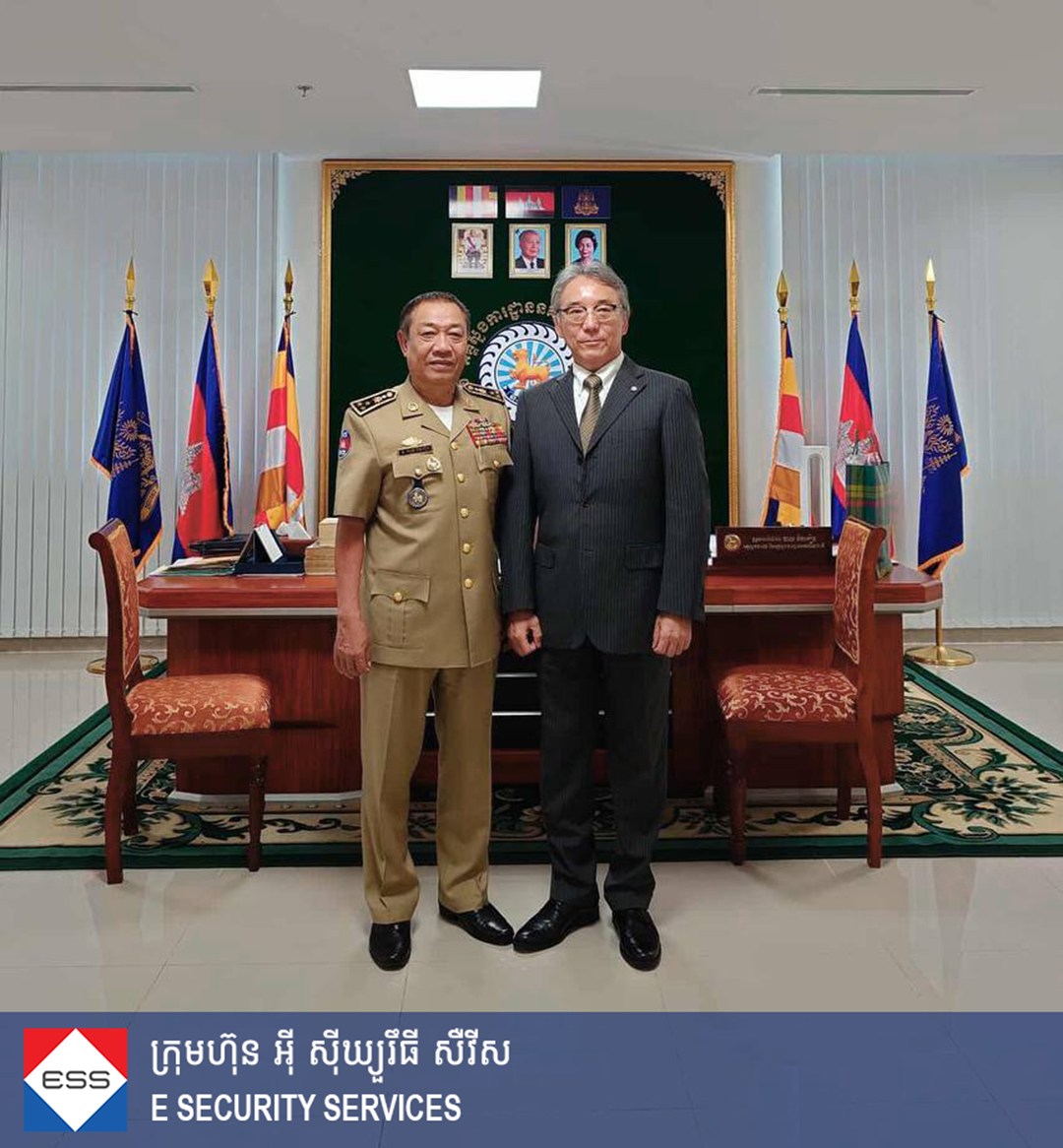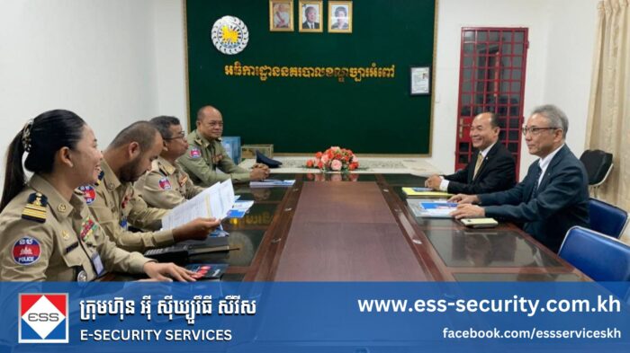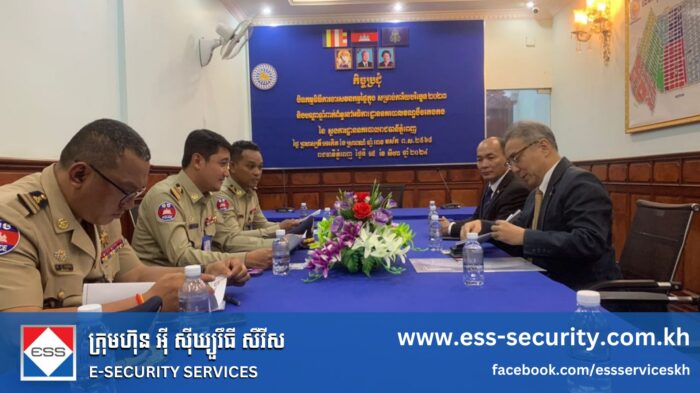 H.E. Lt. Gen. Chhay Kim Khoeun warmly welcomed the ESS delegation and encouraged the company to continue promoting its services to businesses, enterprises, factories, and the wider public. He also expressed his support for ongoing cooperation with ESS in strengthening public security and social order.