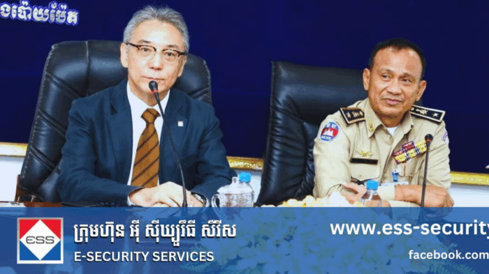 E Security Service, a joint venture (Japan-Cambodia) providing advance security system in Cambodia with high technology from Japan and together with Ministry of Interior of Cambodia. After spending almost 2 years for researching about ESS service as well as ESS equipment Ministry of Interior decided to have Memorandum of Understanding (MOU) with us for 10 years.