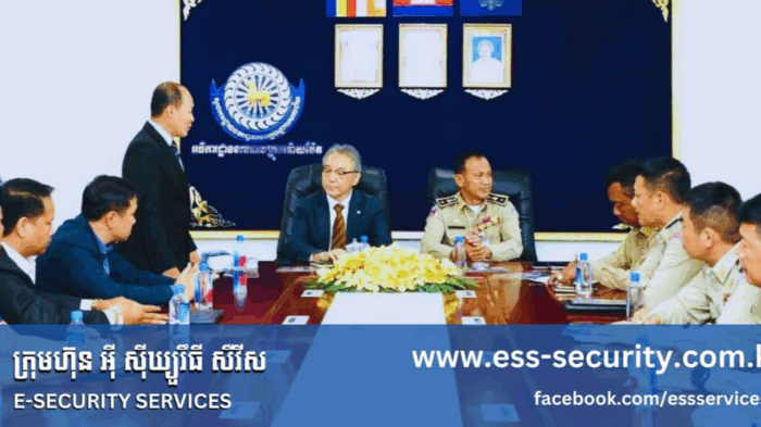 E Security Services (ESS) presented the benefits of modern security technology systems to specialized police units, including Traffic, Security, and Criminal Departments, in Banteay Meanchey Province. The initiative aims to raise awareness of how advanced security systems can support law enforcement in enhancing safety and public order.