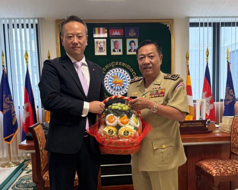 On Friday, June 20, 2025, at 10:30 AM, Mr. Takeharu Mizukoshi, Project Director of ESS, together with Mr. Heng Samaun (Mr. Sam), paid a courtesy visit to H.E. Chhay Kimkhuon, Deputy Commissioner General of the National Police, and Lt. Gen. You Borin.During the meeting, the ESS Director General discussed the company’s 2024 annual report.